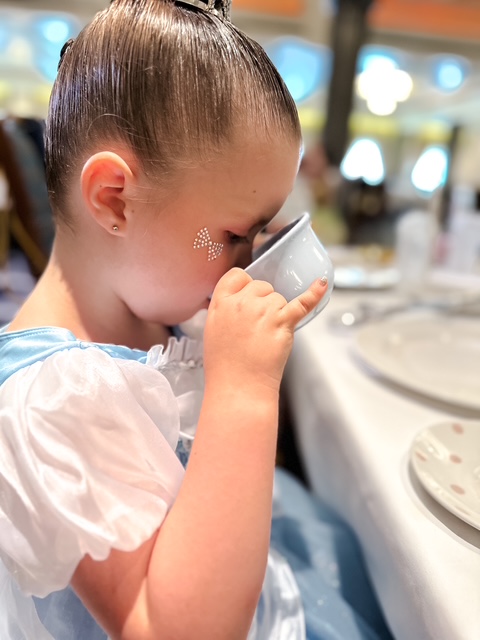 While the ship docked in Nassau, we decided to stay aboard and enjoy the magical offerings of the Disney Magic. We attended the Royal Tea Party, a truly enchanting experience where Harper and Piper felt like real princesses. The event featured delightful treats, tea (or juice for the little ones), and special visits from Disney princesses who made the girls feel extra special with personal interactions and keepsake gifts.